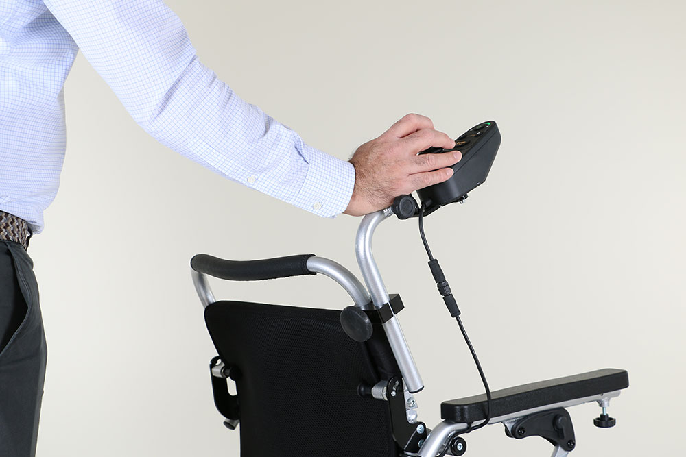 Thanks to our Attendant Control System, individuals walking behind or beside the wheelchair can drive the electric wheelchair with the help of the joystick, allowing the person seated to effortlessly ride along. This solution is beneficial for older users and people with specific medical conditions. Attendant control is a popular accessory in nursing homes and care facilities.