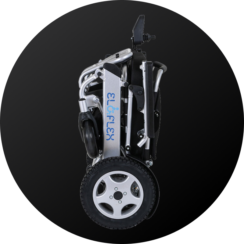 The secret lies in the fact that an Eloflex power wheelchair weighs up to 80% less than a standard electric wheelchair. What’s more, it can be folded up with a simple hand grip and collapsing motion.