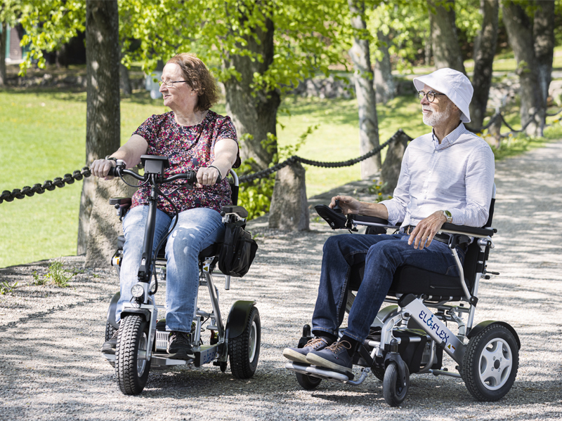 Eloflex is an ideal complement for anyone using a manual wheelchair who wants a lightweight and flexible power wheelchair to take in the car or on trips. With its high sitting comfort, lightweight construction and adaptable compact design, it gives the same possibilities as your manual wheelchair.