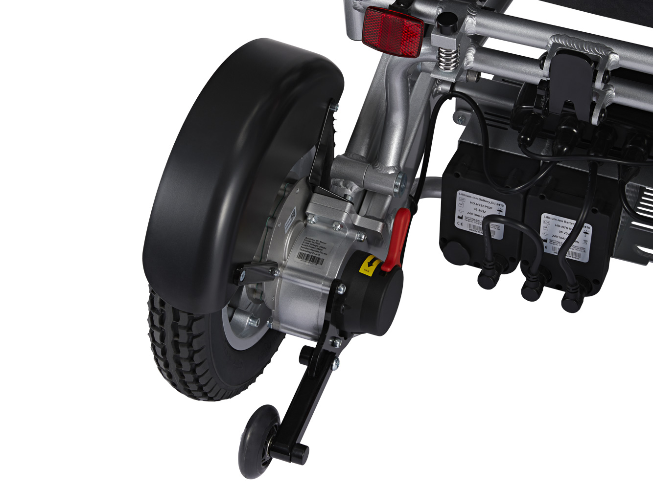 Eloflex D2 is an innovative foldable power wheelchair, sporting the same sleek design as our other power wheelchairs but with a smart twist – it can be disassembled into two parts. These two parts provide a loading weight of 14 and 16 kg, making it easier to transport and load the chair into your car trunk.