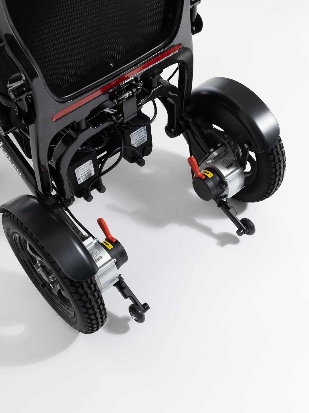 Renowned for its incredible strength-to-weight ratio, carbon fiber is a favored material in applications like bikes, cars, boats, airplanes and structural engineering. Why not bring these benefits to power wheelchairs as well? Our carbon fiber frame isn’t just remarkably lightweight; it upholds uncompromising durability, ensuring a smoother and more enjoyable driving experience.