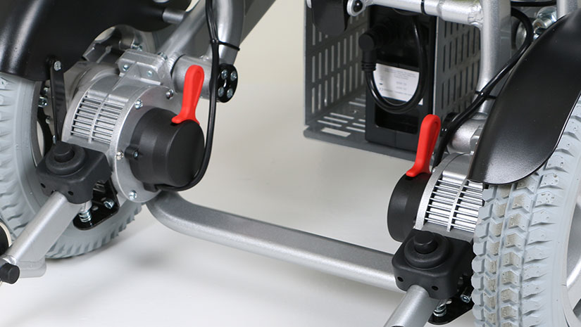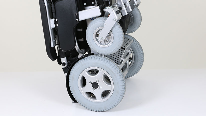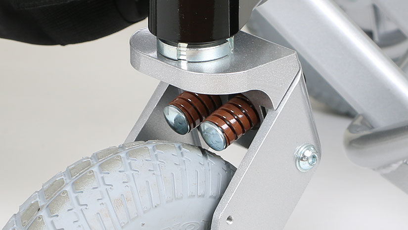 Packed with features like dual suspension and air-filled tires all around, this model is ideal for those living in rural areas. Adjustable armrests, an extra-large footrest, a comfort cushion and space for up to three batteries are just some of the model's highlights.