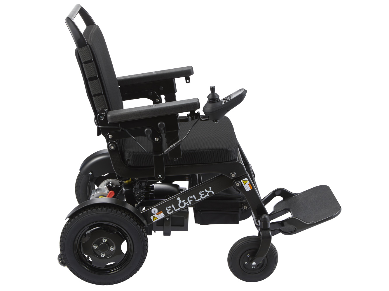Eloflex Z stands as the most exclusive foldable power wheelchair available, both in our own range and on the market in general. This model is tailored for those who want the “best of the best” and hold their assistive device to the highest standards. Crafted from carbon fiber, the frame ensures an exceptionally low weight of only 23kg. Its format is compact, flexible, and foldable.